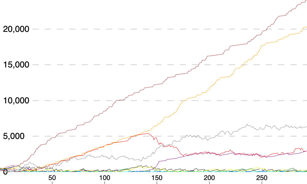Civil Violence Controversial Debate and Public Opinion Cyclic Mobility Diffusion Limited Aggregation Edge Weight Adaptation in Response to Contagion Elementary Cellular Automata Emergent Voronoi Fireflies Syncing Flocking Flocking (3d) Flocking (Heatmap) Forest Fire Game of Life Iowa Caucuses Langton's Ant Language Evolution Lorenz Attractor Mandelbrot Set Explorer Minority Game Network Diffusion Nowak and May's Prisoner's Dilemma Organizational Decision Making Predator-Prey Preferential Attachment Network Race to the Center Segregation The Emperor's Dilemma The Systems Game Traffic Tribute Model Voting
