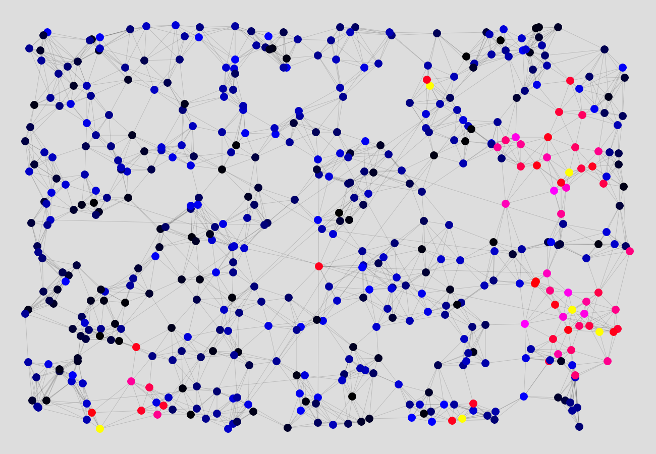 Civil Violence Controversial Debate and Public Opinion Cyclic Mobility Diffusion Limited Aggregation Edge Weight Adaptation in Response to Contagion Elementary Cellular Automata Emergent Voronoi Fireflies Syncing Flocking Flocking (3d) Flocking (Heatmap) Forest Fire Game of Life Iowa Caucuses Langton's Ant Language Evolution Lorenz Attractor Mandelbrot Set Explorer Minority Game Network Diffusion Nowak and May's Prisoner's Dilemma Organizational Decision Making Predator-Prey Preferential Attachment Network Race to the Center Segregation The Emperor's Dilemma The Systems Game Traffic Tribute Model Voting